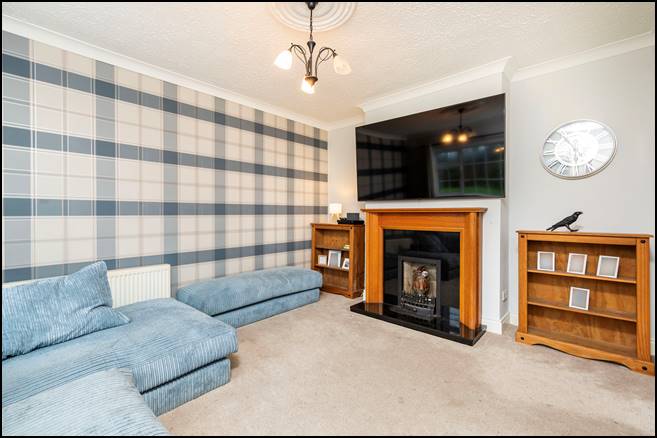 Front Living Room: 4.2m x 3.3m, open fireplace
